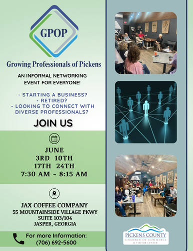 Join us for 𝗚𝗿𝗼𝘄𝗶𝗻𝗴 𝗣𝗿𝗼𝗳𝗲𝘀𝘀𝗶𝗼𝗻𝗮𝗹𝘀 𝗼𝗳 𝗣𝗶𝗰𝗸𝗲𝗻𝘀 (𝗚𝗣𝗢𝗣)—a relaxed, welcoming networking group where local professionals come together to share ideas, support each other, and build relationships that last.